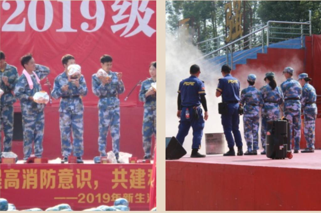 下午16:00,消防知识讲座在学院田径场举行。军训团团长集合2019级新生军训队伍,由公共危机预防协会的翁教官主讲消防安全知识。通过引用2019年增城区发生的火灾案例,分析讲解火场逃生的正确方式及误区,普及防火技巧以及应对措施以及防范意识。