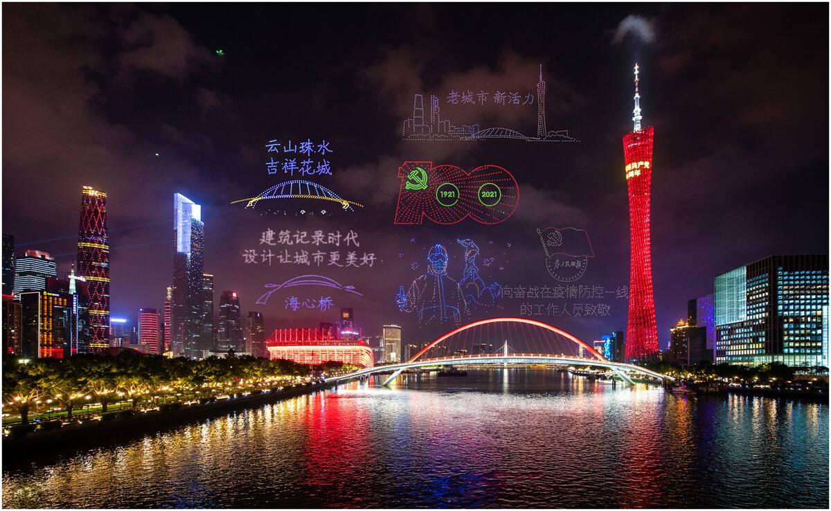 无人机点亮夜空,打造夜空盛宴。