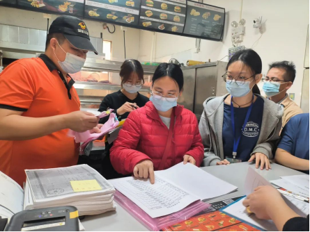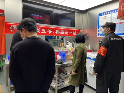 检查组首先仔细检查了商铺日常的运转状况,落实商铺的卫生和菜品质量,做好食品和工具生熟分开及储藏情况,并了解了餐具的消杀与保洁,对食品留样的信息登记与分量、食品原料定点采购及索证索票制度落实情况进行了询问和查阅。