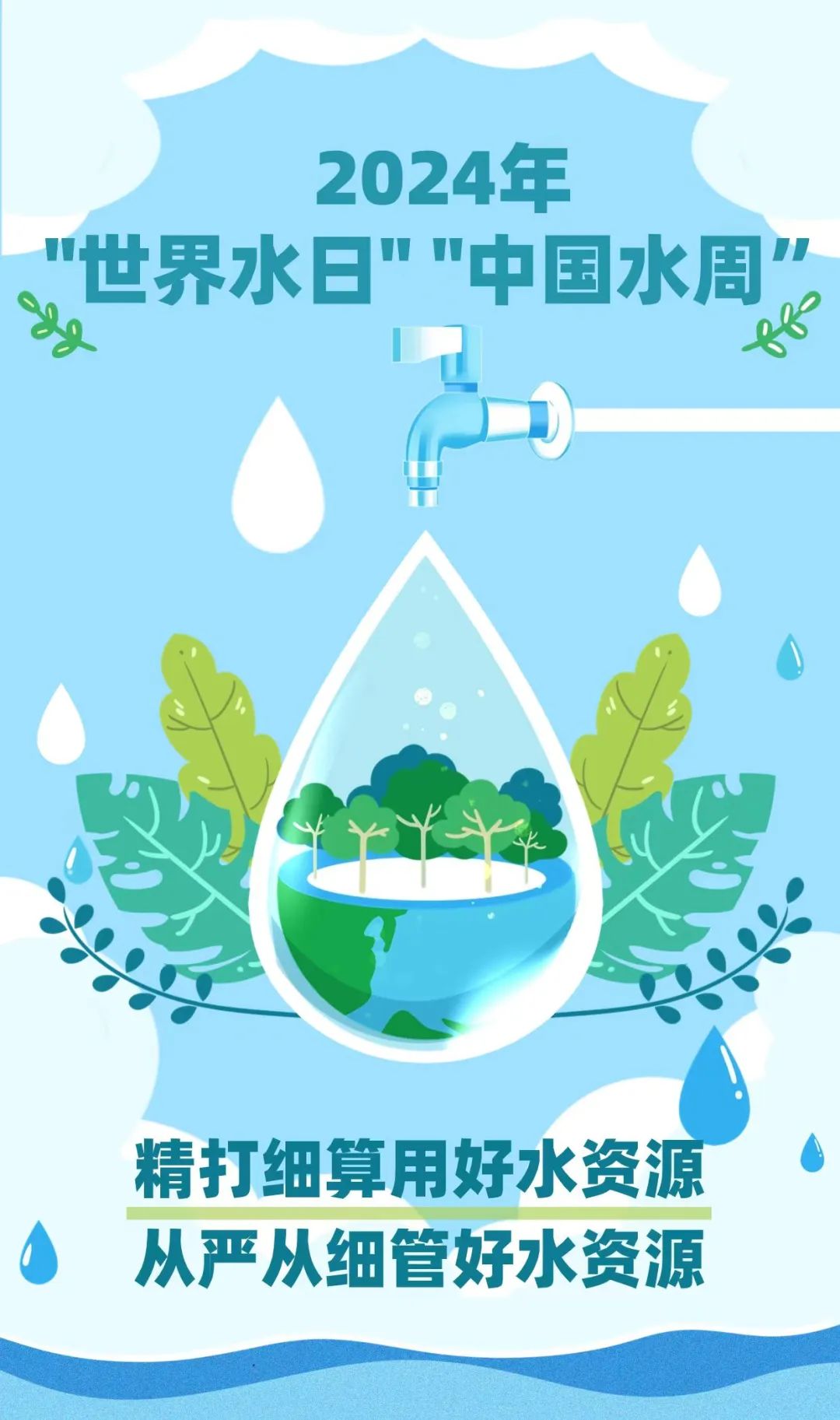 2024年3月22日是第三十二届“世界水日”,3月22日~28日是第三十七届“中国水周”。联合国确定2024年“世界水日”主题为“Water for Peace”(以水促和平)。我国纪念2024年“世界水日”“中国水周”活动主题为“精打细算用好水资源,从严从细管好水资源”。
