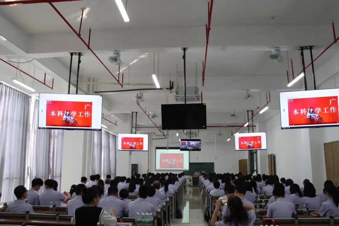 10月8日,williamhill中国官网以线上+线下的方式在两校区同步召开本科教学工作合格评估责任落实大会。主会场设在广州校区图书馆报告厅,广州校区分设七个分会场,肇庆校区同步设一个分会场。华商教育集团董事长廖榕就、学校董事会领导、学校顾问、特邀嘉宾、学校党政领导班子全体成员、校长助理、各二级学院及职能部门负责人主会场参会,全体教职员工分会场参会。会议由党委书记陈玉欢主持。