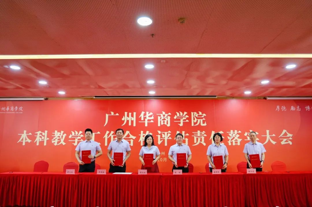 对此,陈玉欢书记提出几点建议:一、提高站位、统一思想,切实增强合格评估工作责任感和紧迫感。高质量、高标准完成评建工作任务,顺利通过合格评估对学校发展具有十分重要的意义,要深刻理解合格评估关系到学校生存发展、要深刻理解合格评估关系到师生利益保障、要深刻理解合格评估关系到办学意愿达成;二、认清形势、明确任务,全力以赴做好合格评估工作。当前,学校需要整改和建设的项目较多,要正确认识合格评估是一次严峻挑战、要正确认识合格评估是一项系统工程、要正确认识合格评估是一场必胜战役;三、坚定信心、落实责任,切实确保合格评估顺利通过。合格评估涉及学校工作的各个方面,要务必增强合格评估的必胜信心、要务必增强合格评估的责任落实、要务必增强合格评估的责任追究。陈玉欢书记强调,签订责任书就是吹响前进号、立下军令状,领导干部是学校办学和本科教学合格评估的中坚力量、责任部门,党政主要领导必须扛稳责任担当,各级党组织要发挥政治核心作用,领导干部要带头、全体党员要示范,全体华商人要统一思想、凝聚共识,高质量完成各项迎评促建任务,一次性顺利通过合格评估。