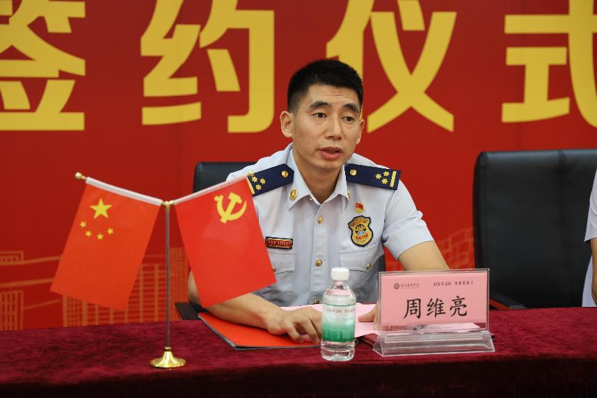 荔城消防救援站党支部书记周维亮与体育学院党总支书记徐振文在发言中提出了党建共建方式,共同表达了对未来三方党建共建的美好愿景和共聚合力、共谋新篇的坚定信心。