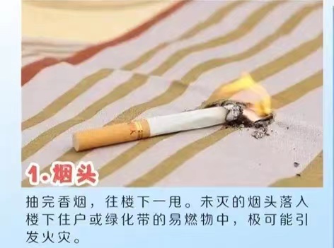 禁止将未熄灭的烟头随手扔下,严禁高空抛物。