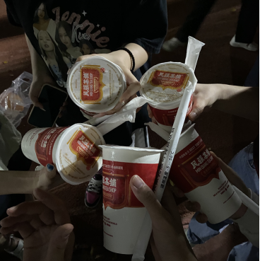 民强茶铺、鸡公煲、沙县小吃等校内热心商家为志愿者们提供暖心饮品和食物