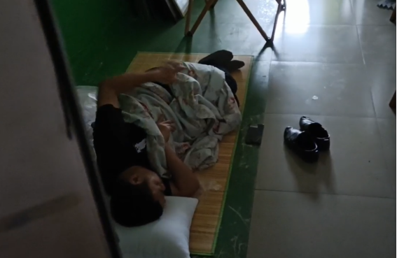 在楼道休息没有被子