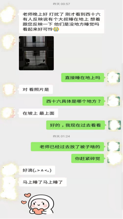 并告知大叔可以在教学楼的休息室休息