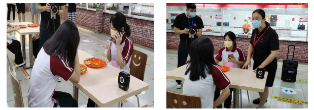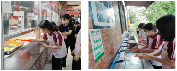 下午2:30,演练开始。小黑、小白、小红、小绿四名学生在第四食堂排队洗手,随后进入大众餐窗口打餐。