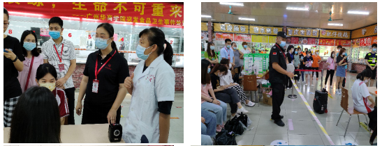 医务人员对学生进行问诊;保安员进行现场封锁,疏散现场人员。