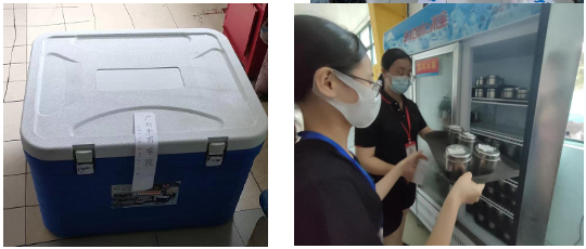 黄主管、郑老师、杨主任到达现场后,查看留样、索证索票情况,封存食物、留样备查。