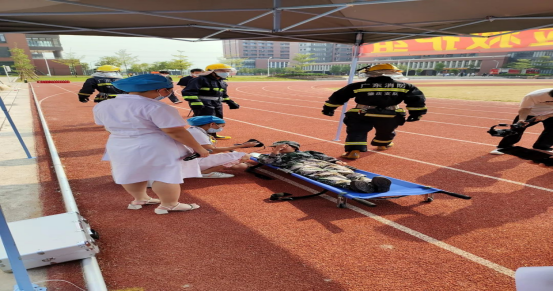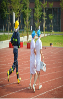 值班人员发现火情,经现场确认后,立即报告值班领导,5号楼3层发生火灾,逐级报告后,总指挥下达启动消防应急预案指令。各小组有条不紊地奔赴现场,各负其责,快速引导被困师生进行紧急疏散。
