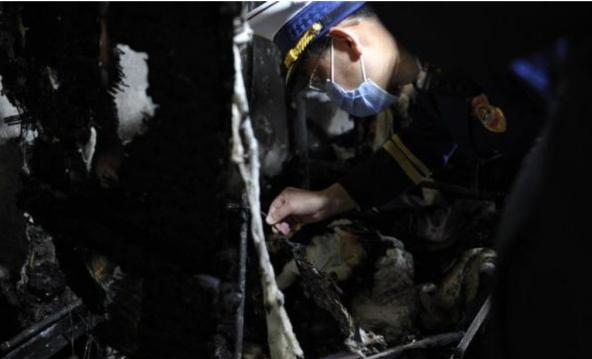 2020年12月,湖南某大学学生宿舍,前一晚使用大功率电器导致断电,恢复用电后,因忘关闭仍放在棉被上的吹风机及电插板开关,导致火灾事故发生。