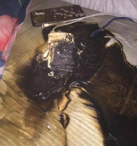 2019年10月30日,广东佛山一大学生,半夜充电宝起火致床被垫等物体被烧焦。